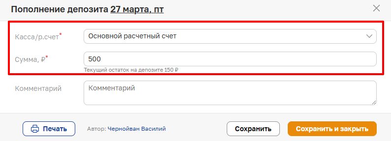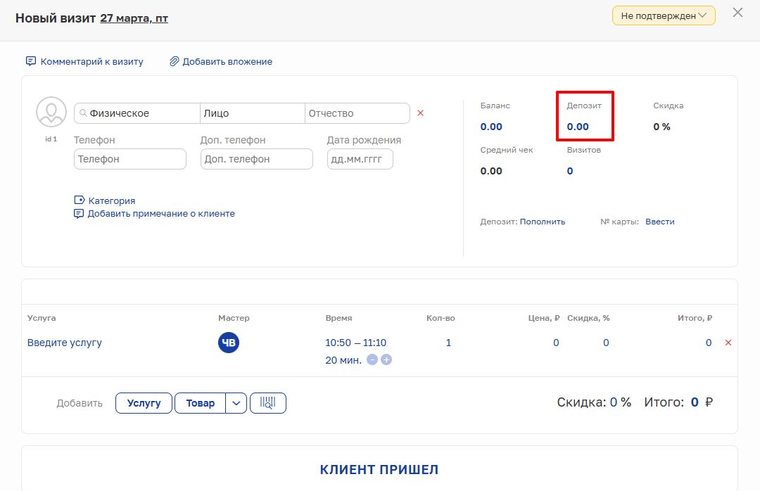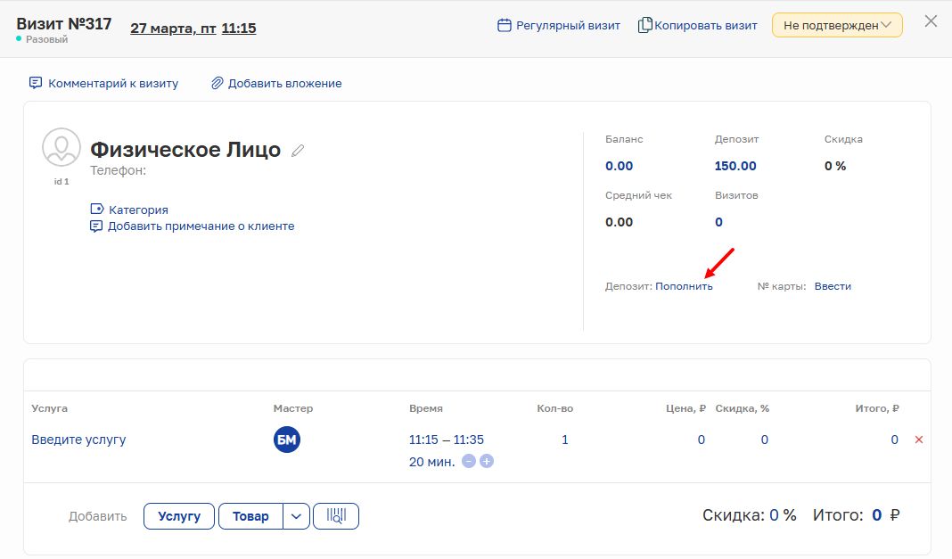 Шаг 4. Убедитесь, что баланс депозита увеличился в карточке визита.
