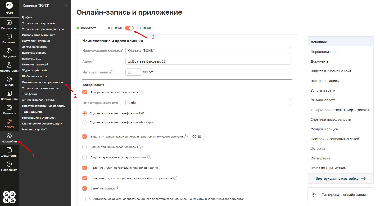 Включение онлайн-записи