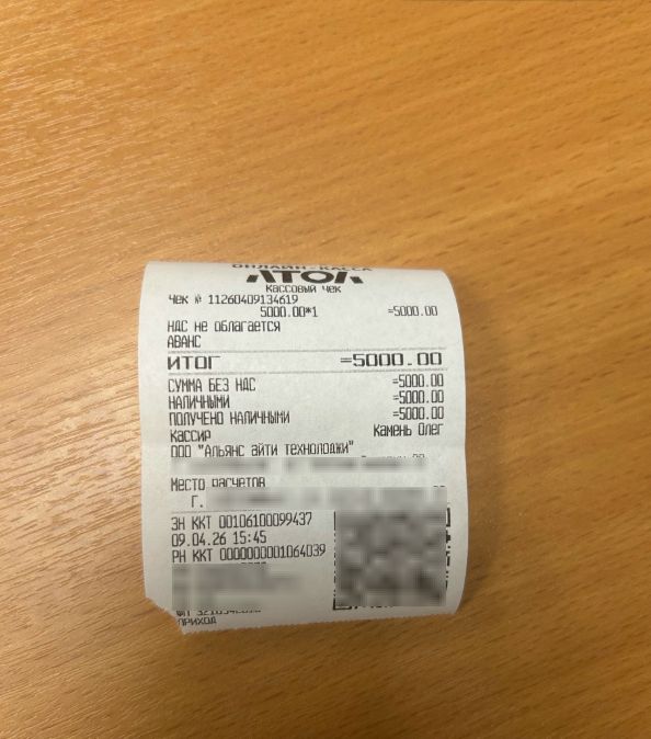 Шаг 4. При наличии кассовой интеграции - распечатайте чек.