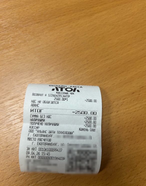 Шаг 4. При подключенной кассовой интеграции — распечатайте чек возврата.