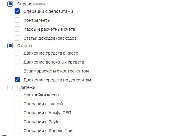 Важно: Оформление возвратов и просмотр отчетов по депозитам доступны только при наличии соответствующих прав доступа.