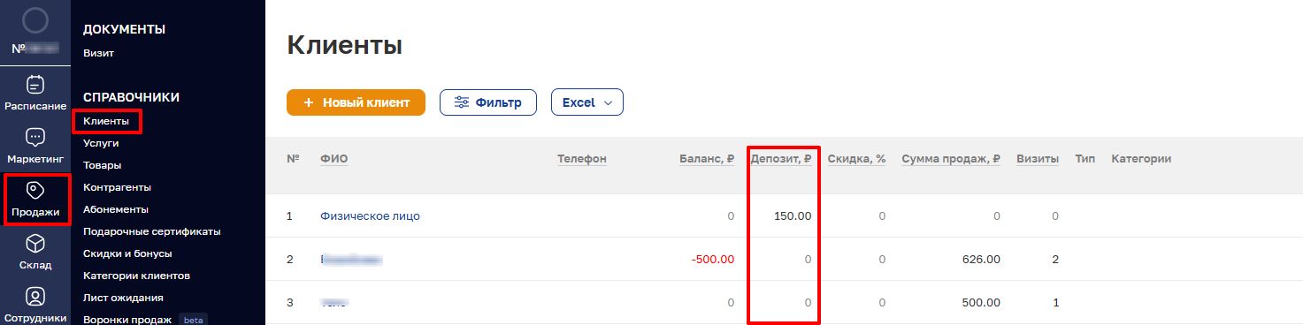 Депозит - это специальный счет, на котором учитываются авансы, внесенные клиентом, с которого можно оплачивать визиты.