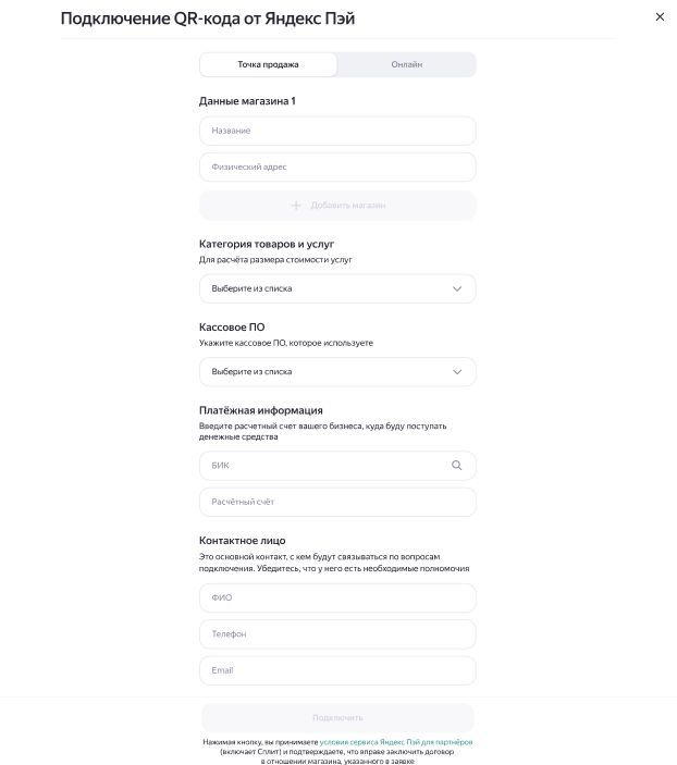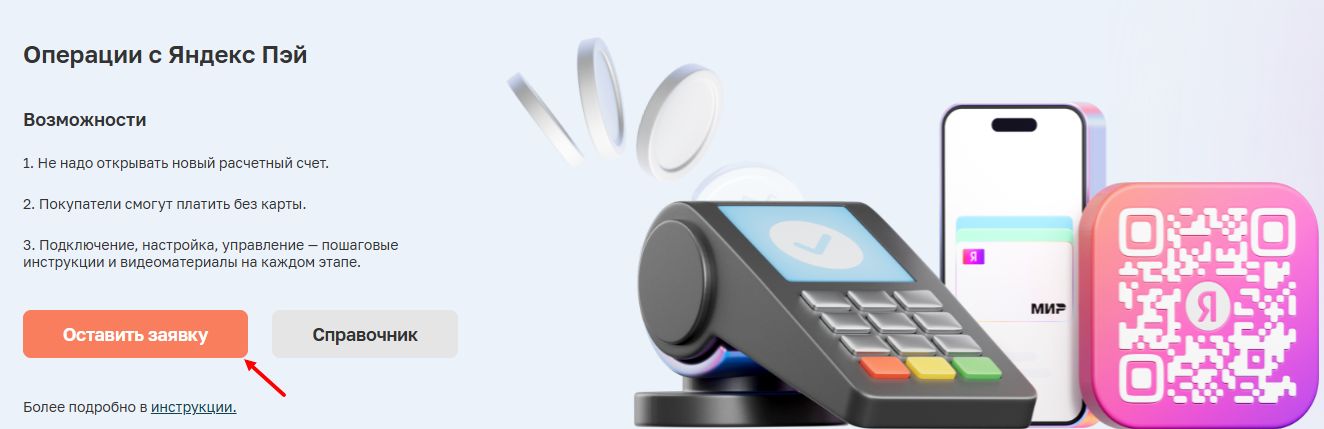 Она используется для перехода к регистрации и подключению Яндекс Пэй, если организация еще не подключена.