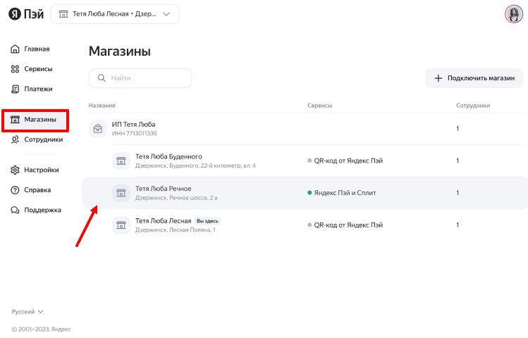 Данные магазина - название и физический адрес. Этот адрес используется для доставки таблички с QR-кодом. Если у организации несколько точек, можно добавить дополнительные магазины.