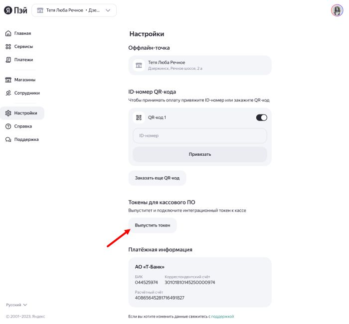 После привязки ID-номера к QR-коду необходимо выпустить токен. Этот токен используется для настройки интеграции в Arnica.