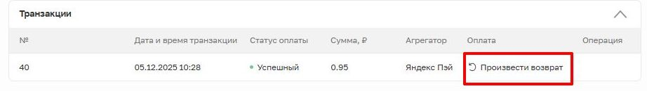 Важно! Для корректной синхронизации данных и удобства учета рекомендуется выполнять возвраты через интерфейс Arnica, где информация по операции автоматически обновляется.