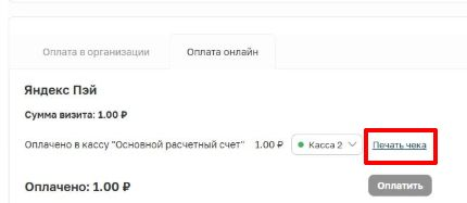 Оплата визита через Яндекс Пэй